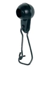 Plastové závěsy na olova nebo krmítka z černého plastu s karabinou. Balení obsahuje 10 ks.